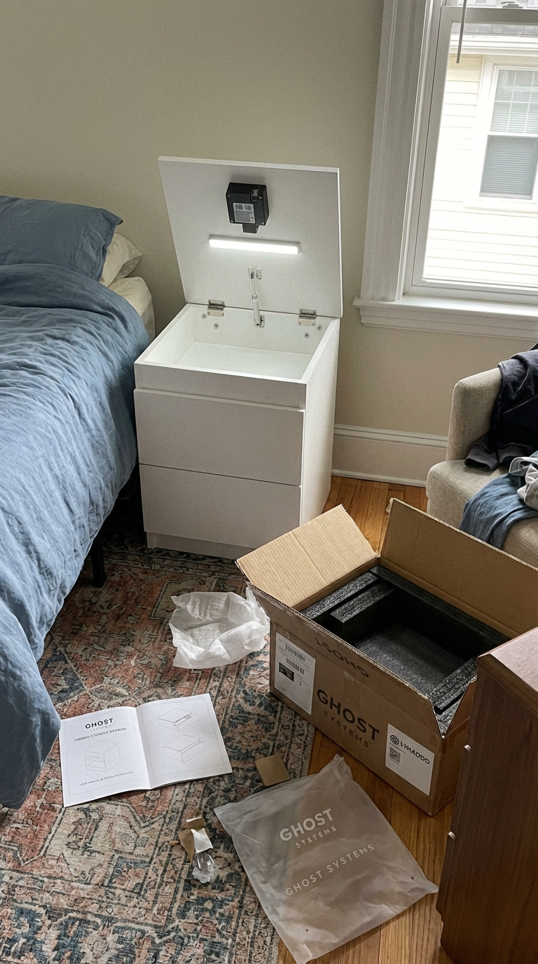 Zero visible seams or locks. Even if someone inspects your furniture, it looks like a solid decorative piece. The NFC mechanism leaves no digital footprint.